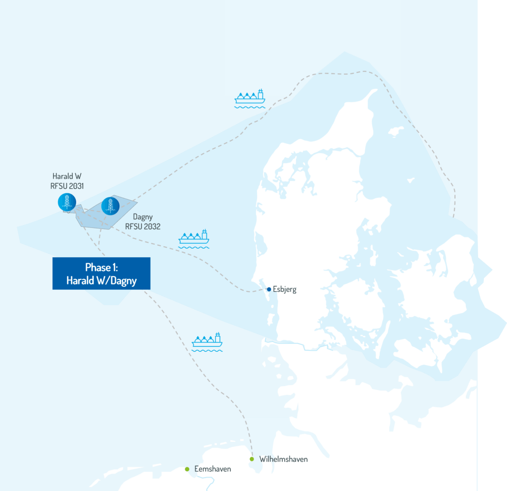 Phase 1 covers the Dagny and Harald storage licenses and represents the first development phase of Project Bifrost. Its primary objective is to establish the initial offshore CO2 transport and storage system in the Danish North Sea and enable early, large‑scale CO2 injection.