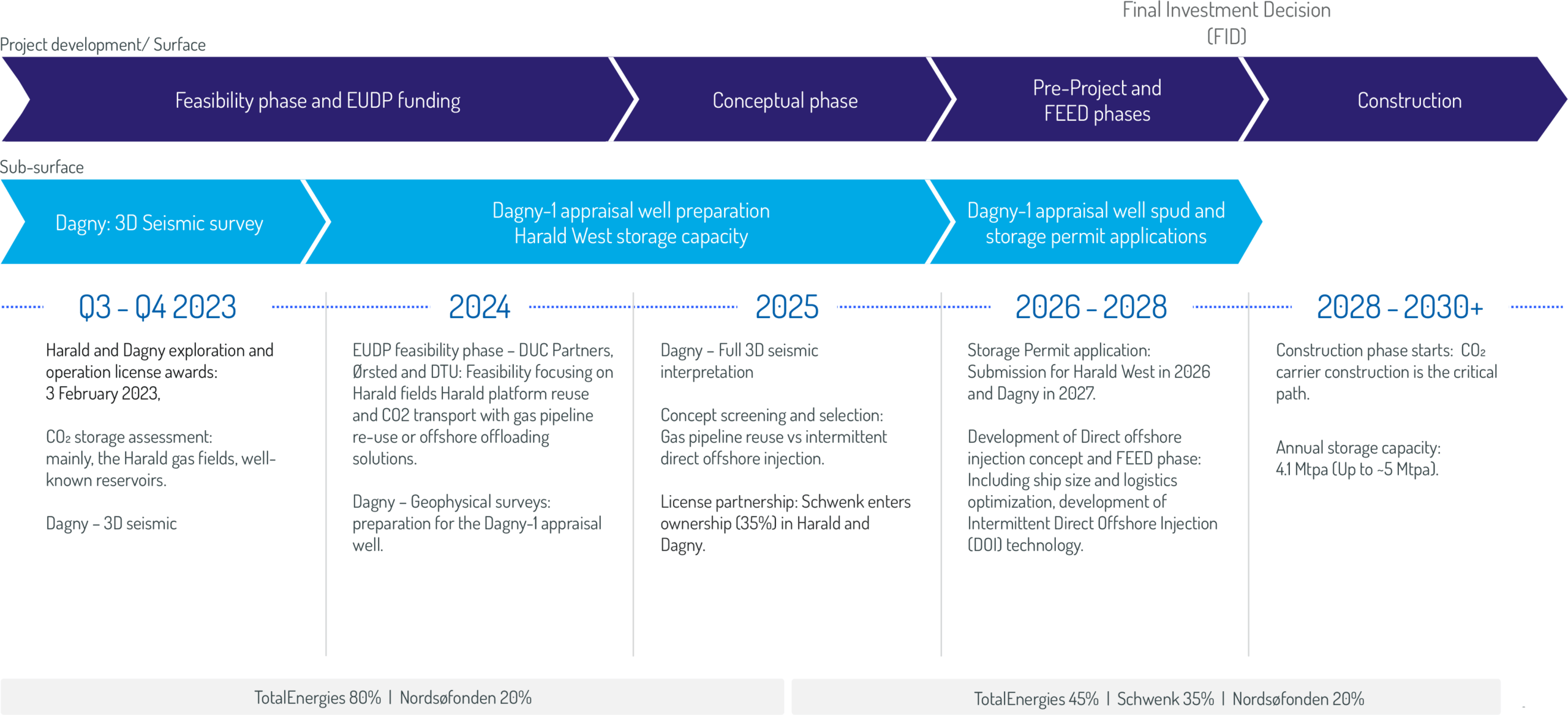 - Owners: TotalEnergies (operator) 45%, CarbonVault 35% and Nordsøfonden 20%